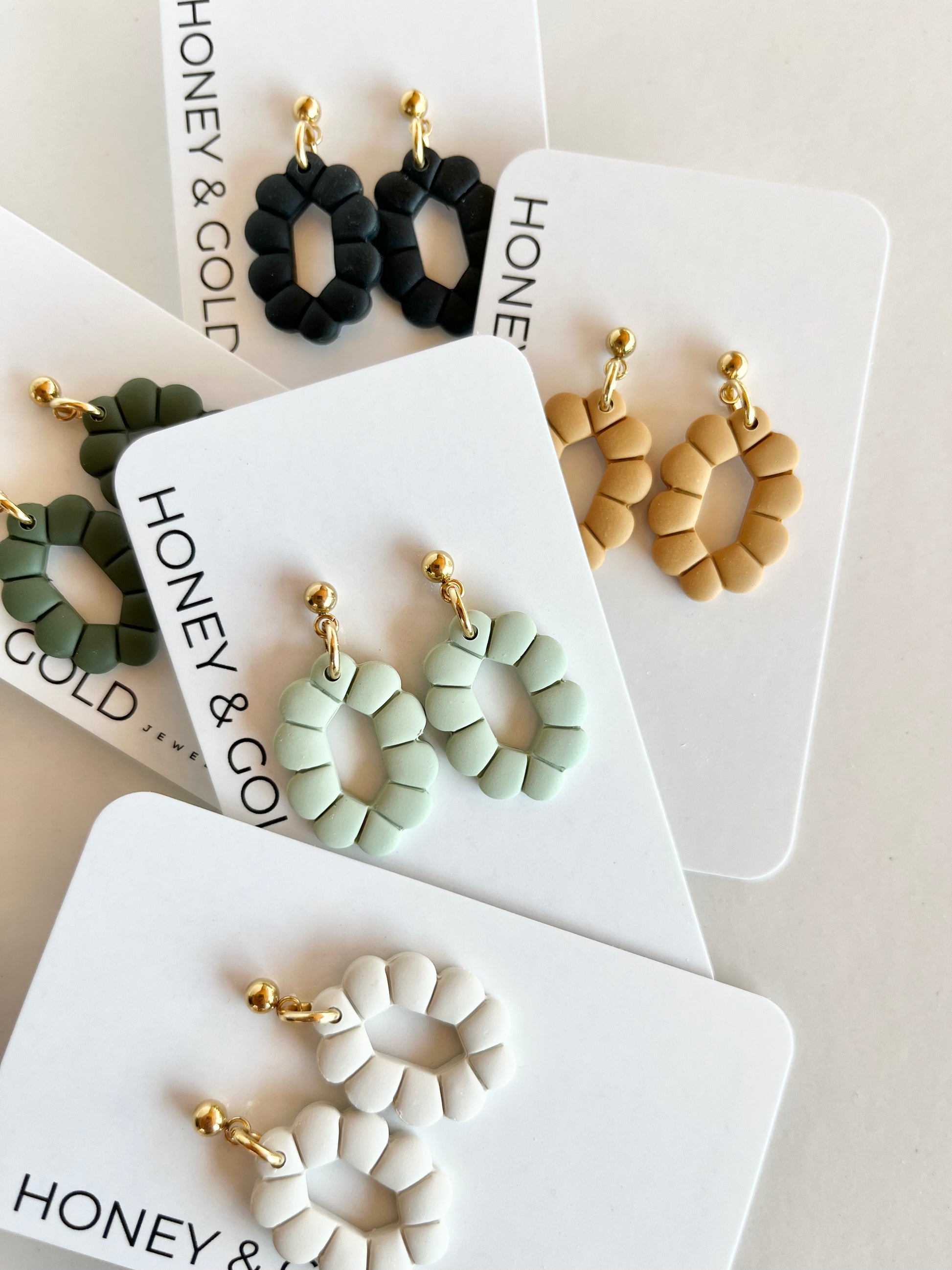 Shipping & ReturnsShipping  Please allow 3 business days prior to shipping. Your purchased items requires small batch -handcrafting, assembly & packaging by a one woman run show. Your patience is appreciated.We do not have a return policy. If the items purchased were received damaged or broken during transport, please reach out to us directly via Email.  This is a reminder that although clay has a "flex" please do not bend your pieces & remember to be gentle with your new clay accessories.