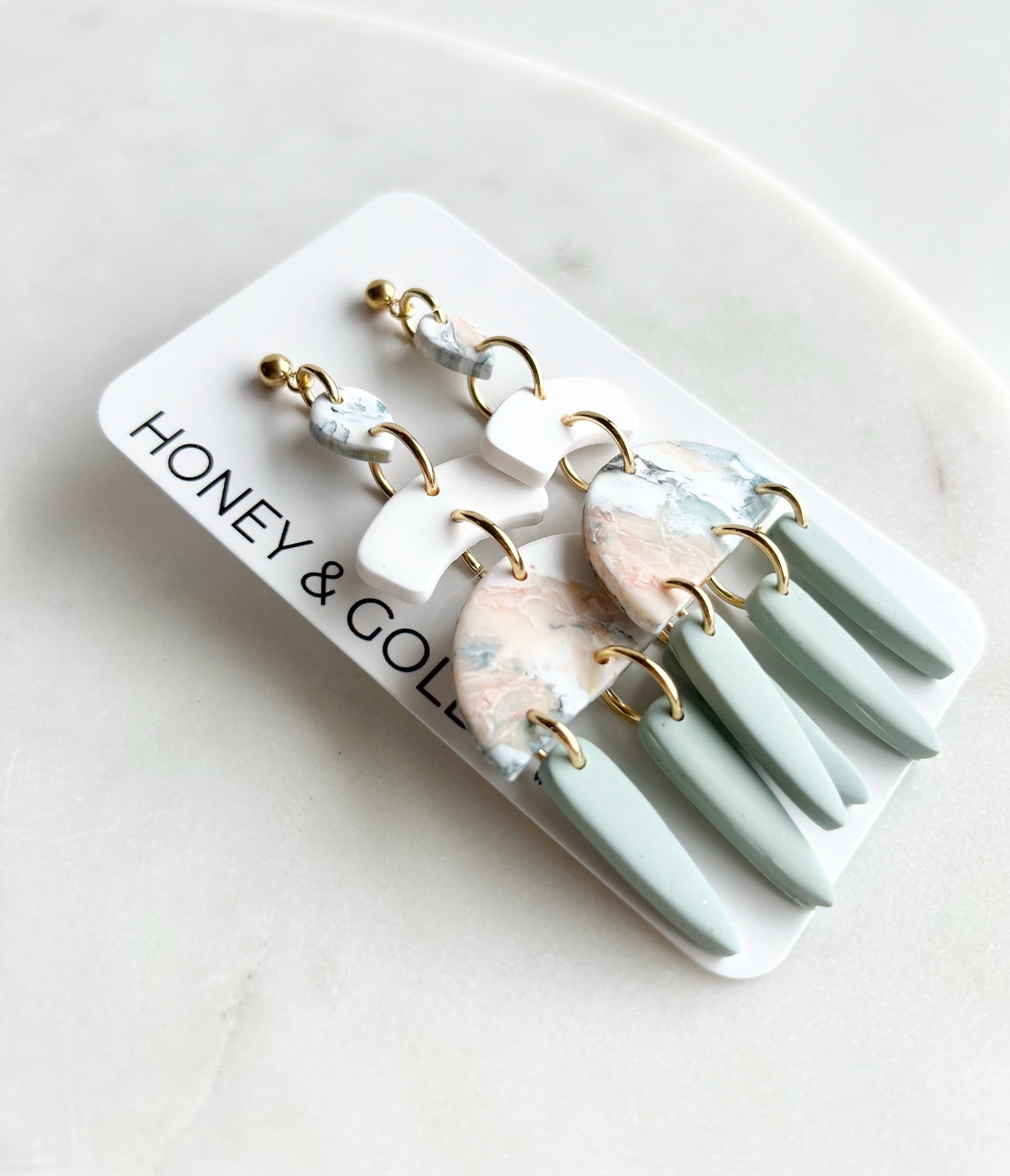 Please note: due to the handmade, marbled nature of these earrings, the pair you receive may not be the exact pair pictured—but will be beautifully similar in tone and style.