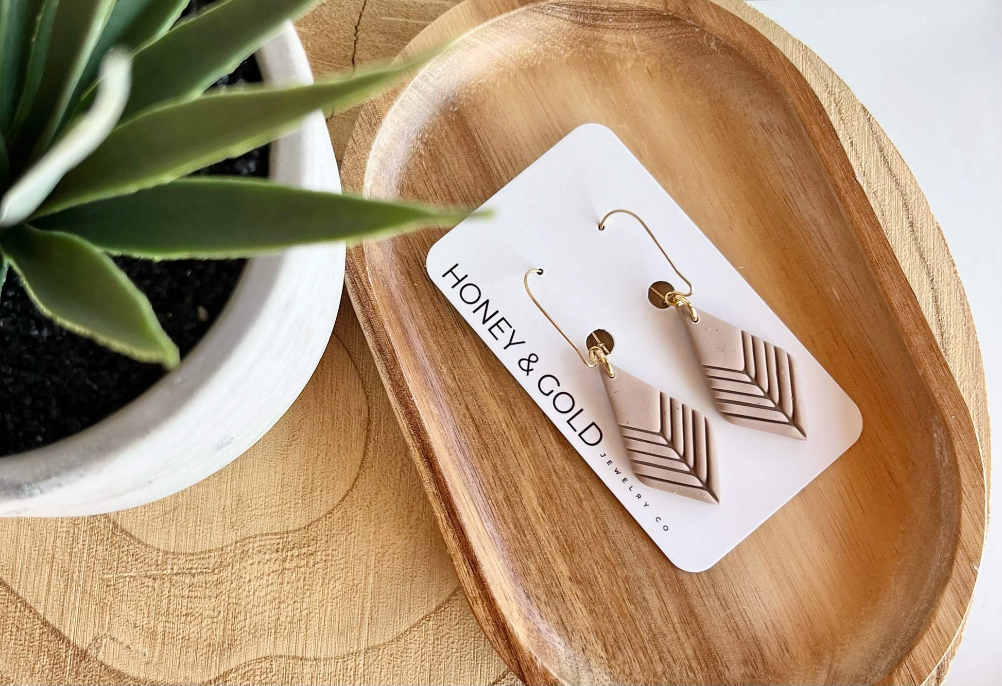 A modern take on timeless elegance. These handcrafted geometric drop earrings feature sleek lines and subtle sculptural details, blending vintage sophistication with contemporary minimalism. Designed for effortless styling, they offer a refined yet bold statement in neutral hues, making them the perfect addition to any wardrobe.