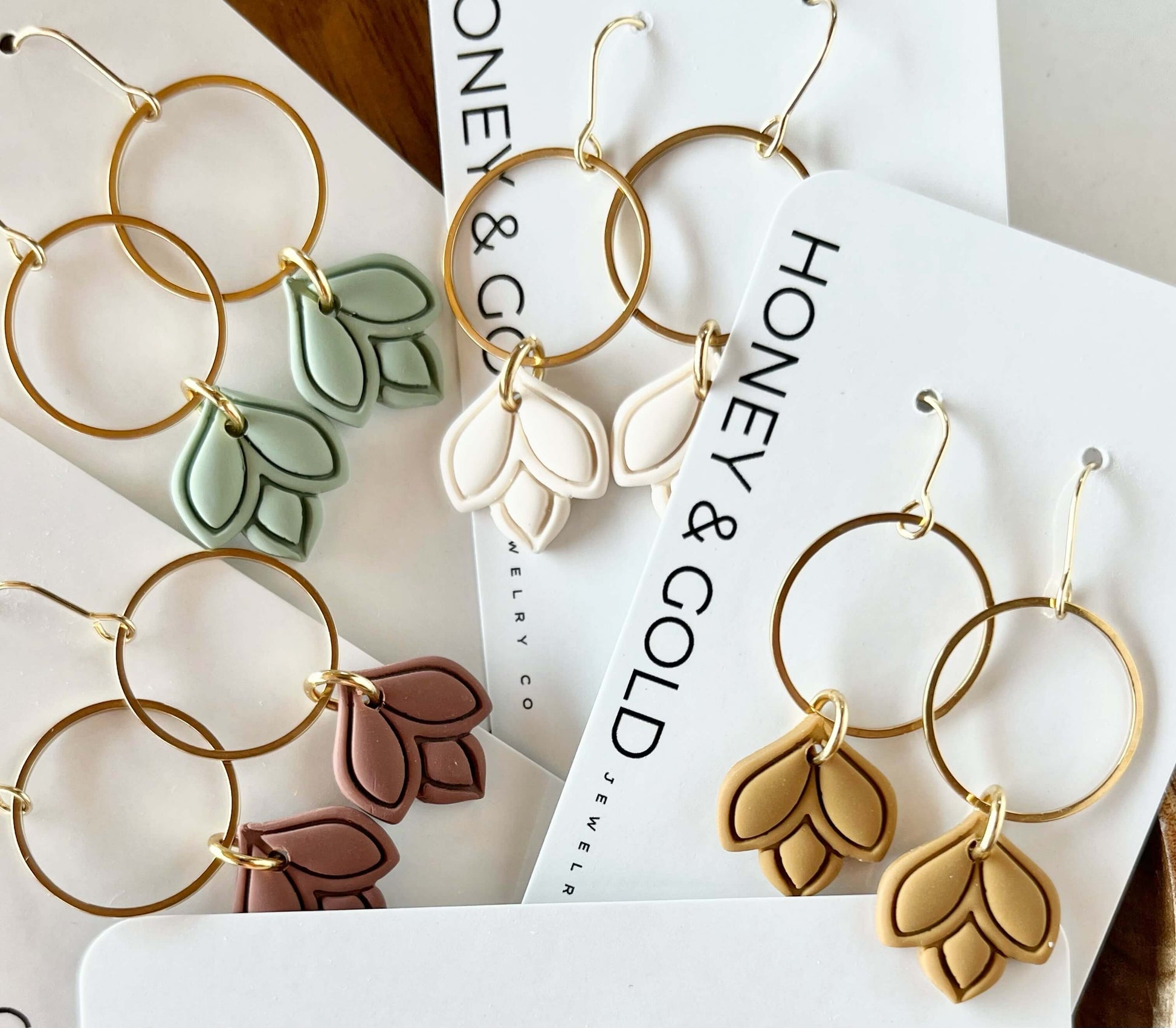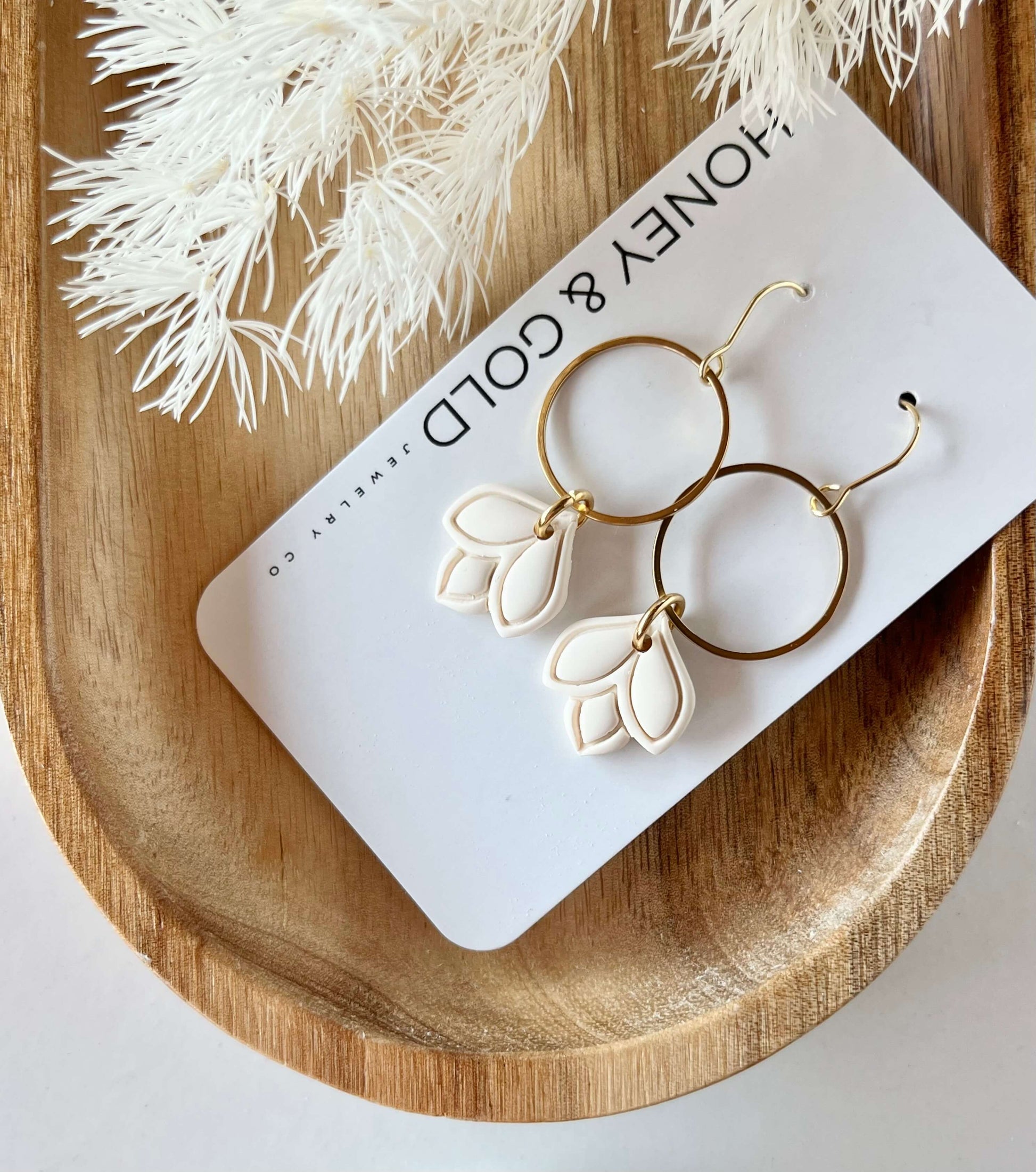 Bring a touch of modern charm to your everyday look with the PHAÍDRA. Featuring lightweight polymer clay petals suspended from sleek gold hoops, these earrings combine playful movement with minimalist design.
