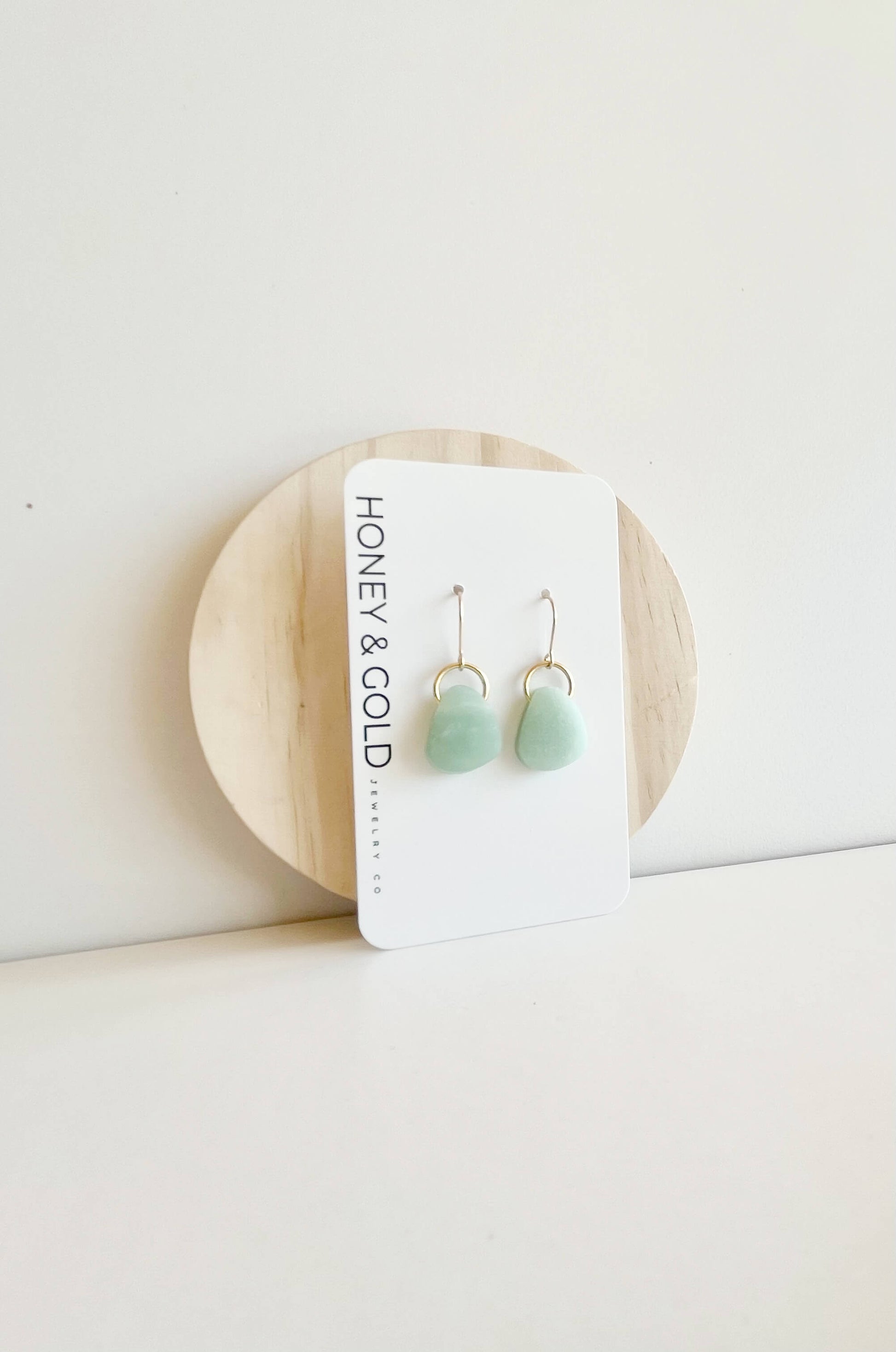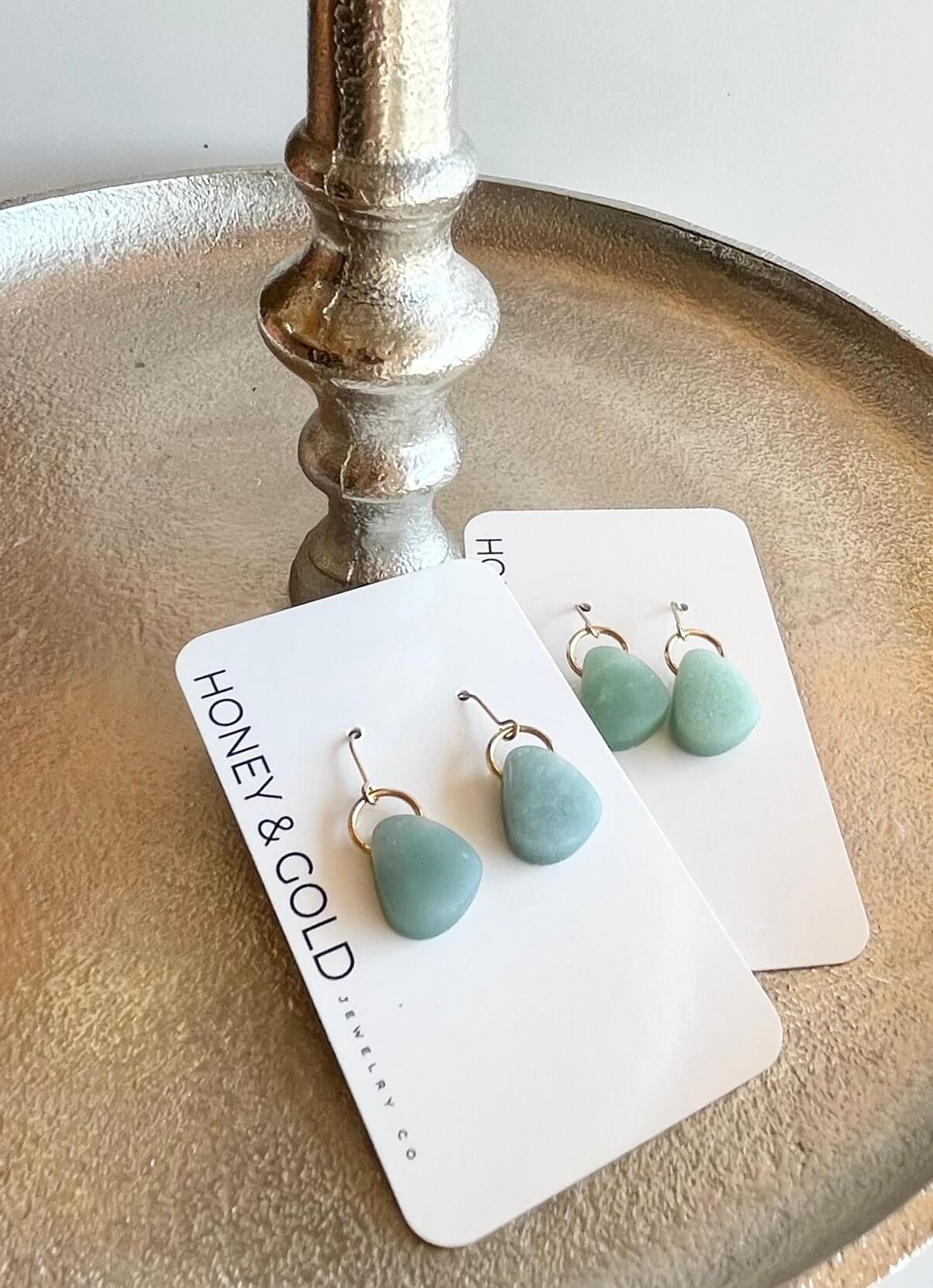 Discover the allure of the coast with these stunning earrings. Inspired by sandy beaches and the soothing hues of the ocean, these earrings feature faux sea glass crafted from polymer clay. They are feather-light, making them comfortable for all-day wear. Add a touch of seaside charm to any outfit with these captivating earrings.